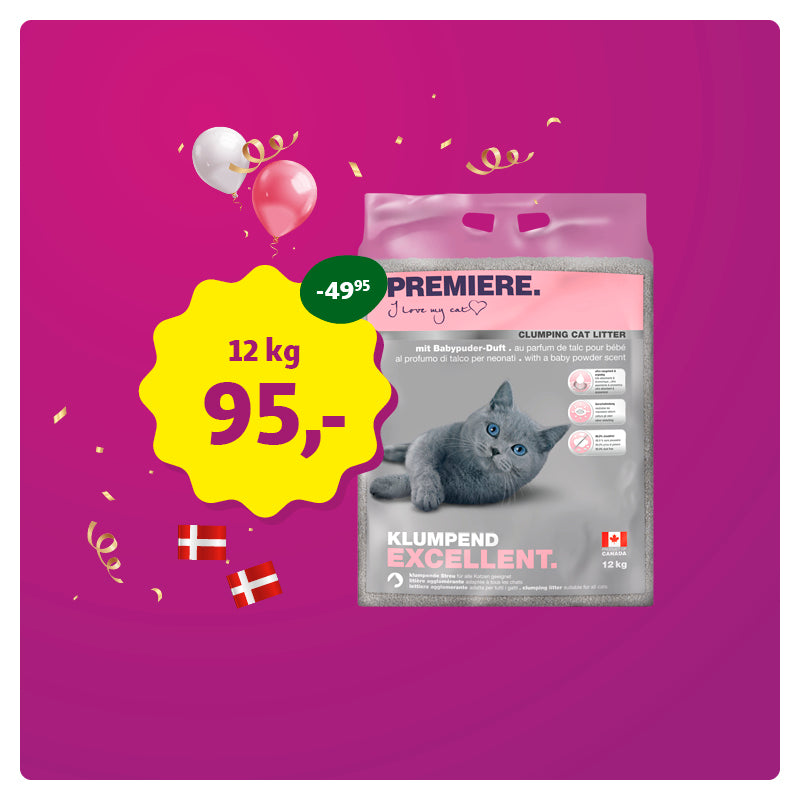 Klumpende kattegrus med du af babypudder,12 kg. Før 144,95 Nu 95,-