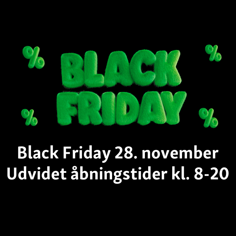 Vi udvider vores fysiske åbningstider på Black Friday og holder åbent i alle vores butikker fra kl. 08-20, dog kan enkelte butikker være undtaget - se hvilke butikker åbningstiden ikke gælder for på maxizoo.dk