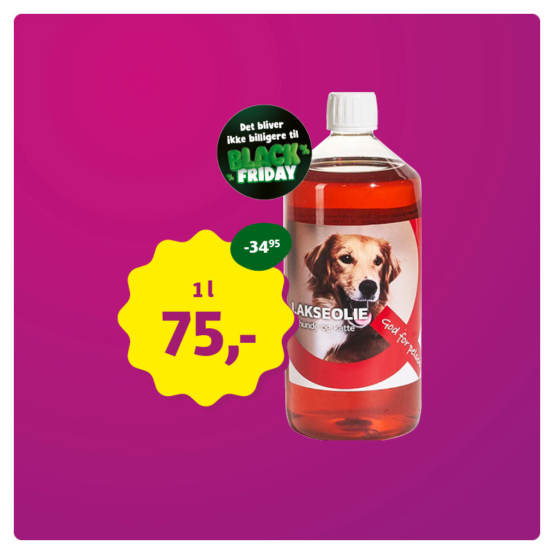 Lakseolie til hunde og katte, 1 l.Før 109,95 Nu 75,-
