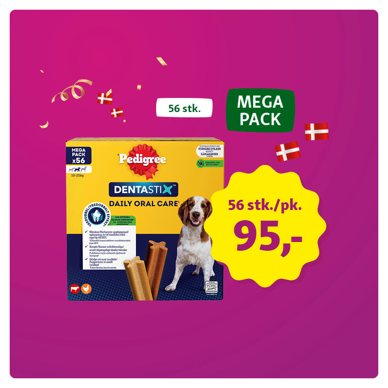 Tyggestænger med tandrensendeeffekt til medium hunde. 56 stk./pk.