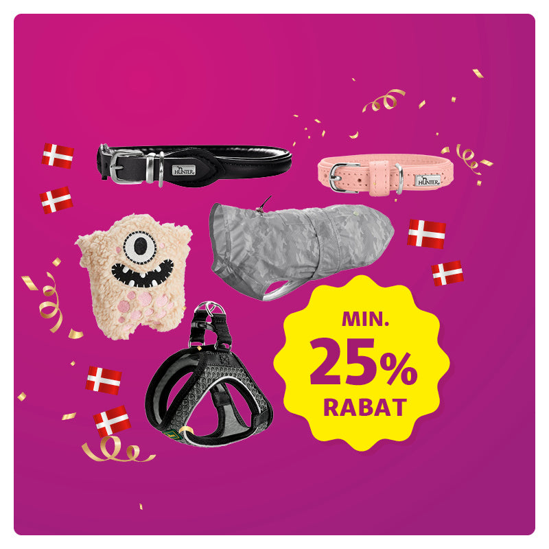 Vælg mellem flere varianter af halsbånd,seler, legetøj mm. F.eks. Halsbånd elg sort 24-27 cm Før 299,95 Nu 224,95