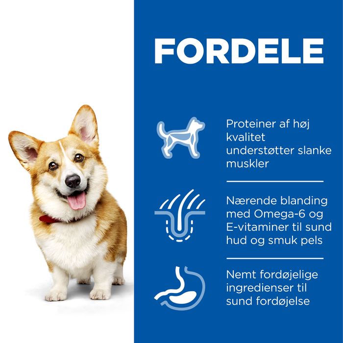 Selvom din hund er lille, har den ernæringsbehov som en voksen, ved at give din hund HILL'S SCIENCE PLAN Small & Mini Adult hundefoder med kylling, sørger du får at din lille hund får præcis den ernæring, den har brug for. Dette hundefoder er fremstillet med letfordøjelige ingredienser, som er specielt sammensat til små hundes maver. Den lille foderpiller passer til din lille hunds mund, med højkvalitetsprotein for at støtte muskelmassen, plus nærende omega-6 fedtsyrer og E-vitamin, som fremmer en sund hud og pels. Dette hundefoder indeholder en patenteret blanding af antioxidanter, som støtter din lille hunds immunforsvar og fremme livslang sundhed hos din hund.