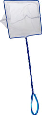 Finmasket fiskenet med snoet skaft, plastovertræk, hvid og blå.