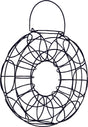 Rund foderautomat til vildtfugle med løkke til ophængning.