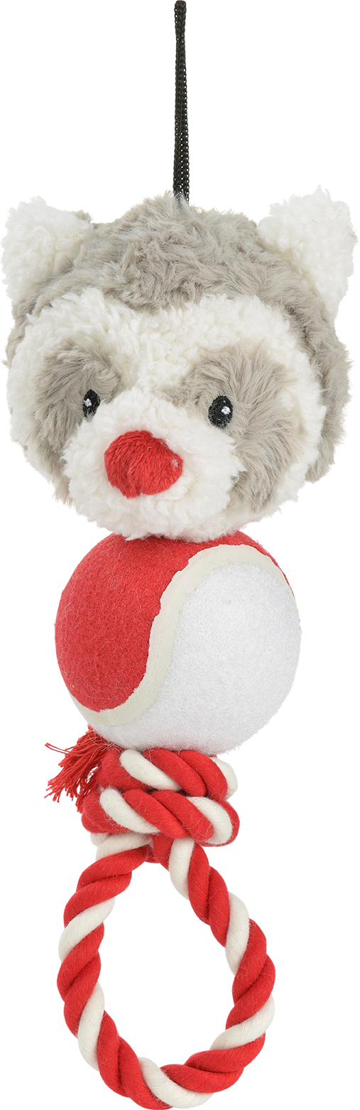 Den bløde plys, slidstærke bold og snoede reb-ring giver din hund masser af aktivering og underholdning – ideel som julegave eller hverdagslegetøj.