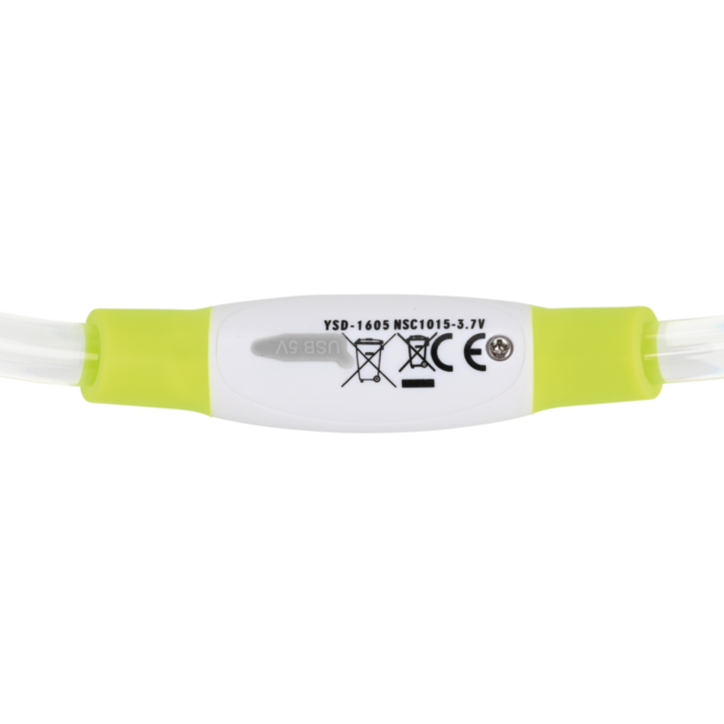 Smart lyshalsbånd, der bidrager til bedre synlighed i mørket. Det kan indstilles til konstant eller blinkende lys og kan ses på en afstand op til 300 m. Ved blinkende lys kan batteriet holde i ca. 5 timer og ved konstant lys ca. 2 timer.