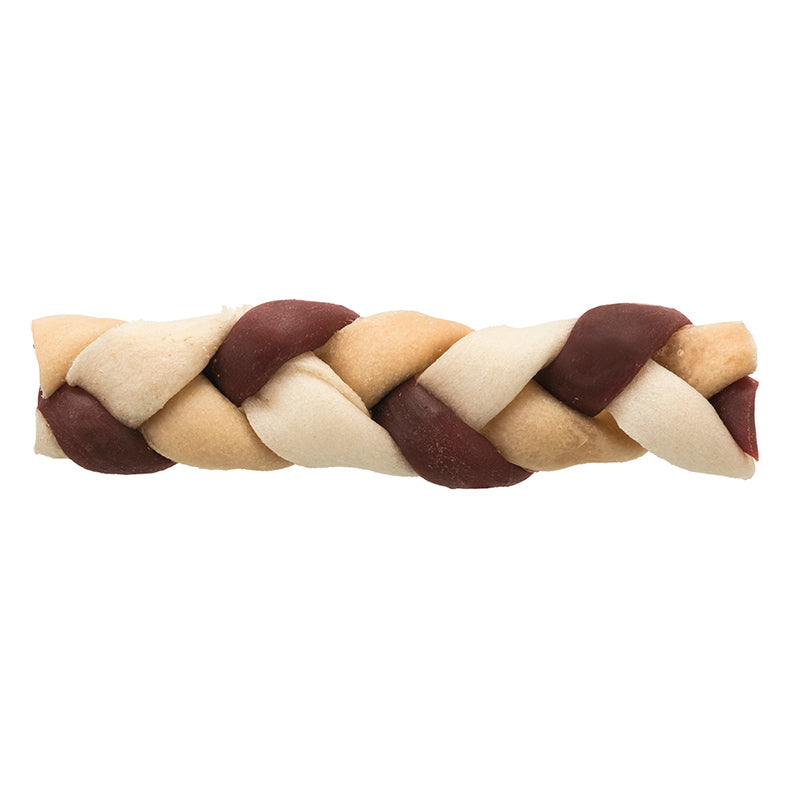Denne hundegodbid lavet af tørret og flettet bøffelskind og oksekød vil glæde din hunds smagsløg. Godbid, der kan sammenlignes med en knogle på grund af dens længde og måden den passer ind i en hunds mund. Disse denta sjove flettede pinde godbidder er et aktiv for det gode helbred for din hunds tænder og tandkød.