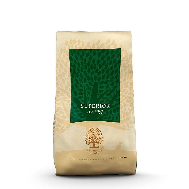 SUPERIOR LIVING er vores legendariske kornfri fuldfoder til voksne hunde tilberedt med generøse mængder frisk kylling, and og vores unikke kombination af laks og ørred. Dette særdeles velsmagende måltid er desuden tilberedt med masser af bær, urter og superfoods.