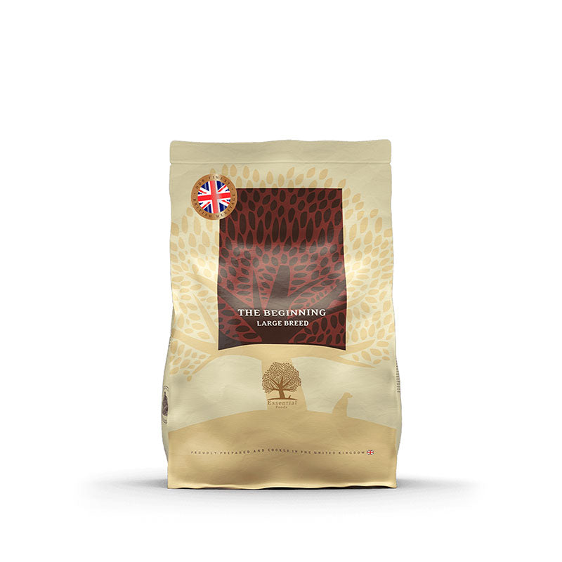Our finest The BEGINNING LARGE BREED er vores luksuriøse og skræddersyede kornfri måltid til hvalpe, der som voksne forventes at veje mere end 15 kg. Måltidet er spækket med lokale og regionale delikatesser som fritgående britisk kylling, britisk landand, skotsk laks, frisk ørred og hele æg.