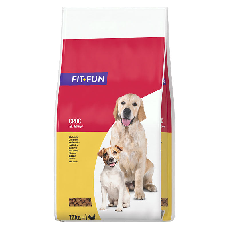 FIT+FUN Croc med fjerkræ er et nærende tørfoder til fuldvoksne hunde med et moderat aktivitetsniveau. Med 68% animalsk protein i det samlede proteinindhold er det et velafbalanceret måltid, som indeholder alle de vigtige næringsstoffer samt vitaminer og mineralstoffer, som en hund har brug for til et lykkeligt liv. Uden tilsætning af sukker, kunstige farve- og aromastoffer samt konserveringsmidler.