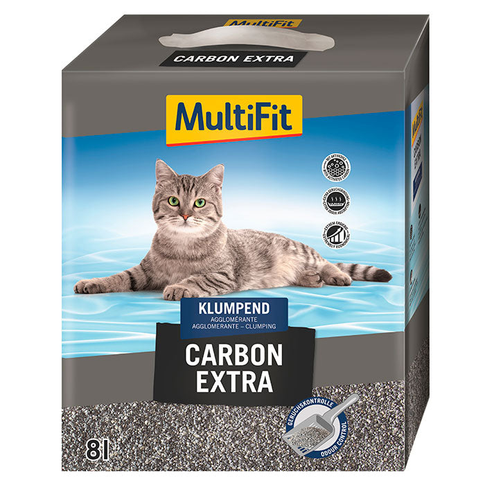 MultiFit carbon extra er en støvsvag type klumpende kattegrus med en ekstra coating af aktivt