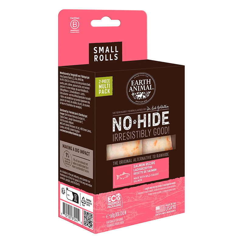 No-Hide Chew er fremstillet af enkle, bæredygtige ingredienser og vildtfanget laks og er 100% fri for syntetiske stoffer og blegemidler. Hver tyggepind er rullet og forsigtigt bagt for at sikre maksimal fordøjelighed og næringsværdi, perfekt til at engagere dit kæledyr eller holde det underholdt.