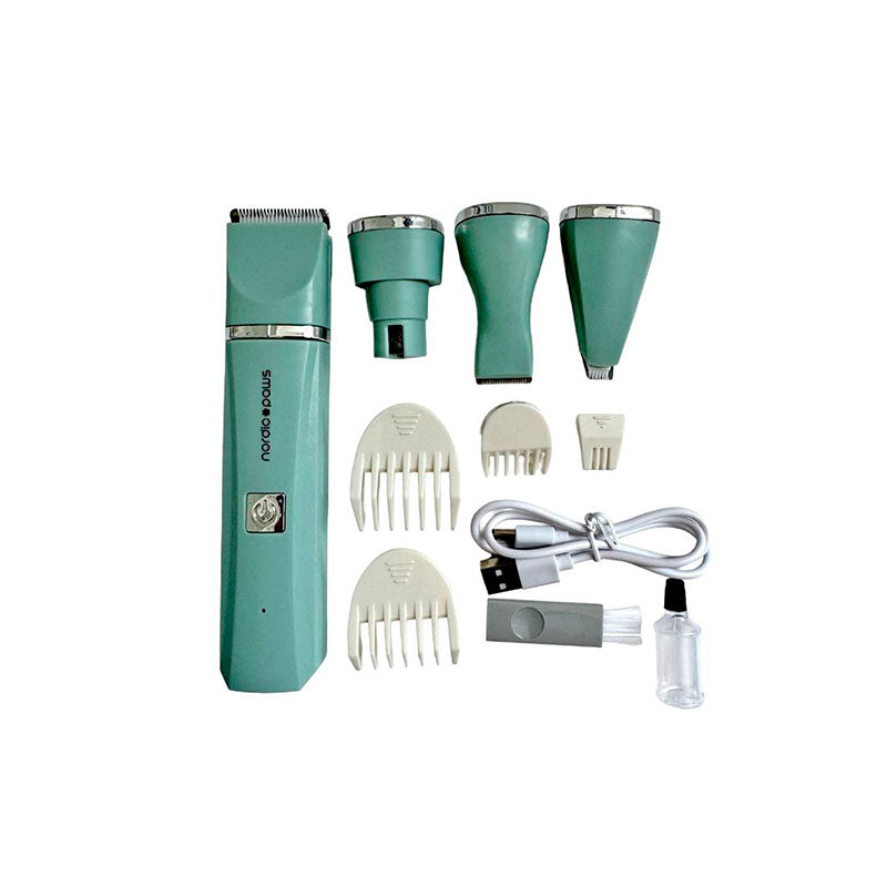 Den er ledningsfri, har keramisk skær og leveres med 4 udskiftelige skærehoveder – perfekt til både hunde og katte.