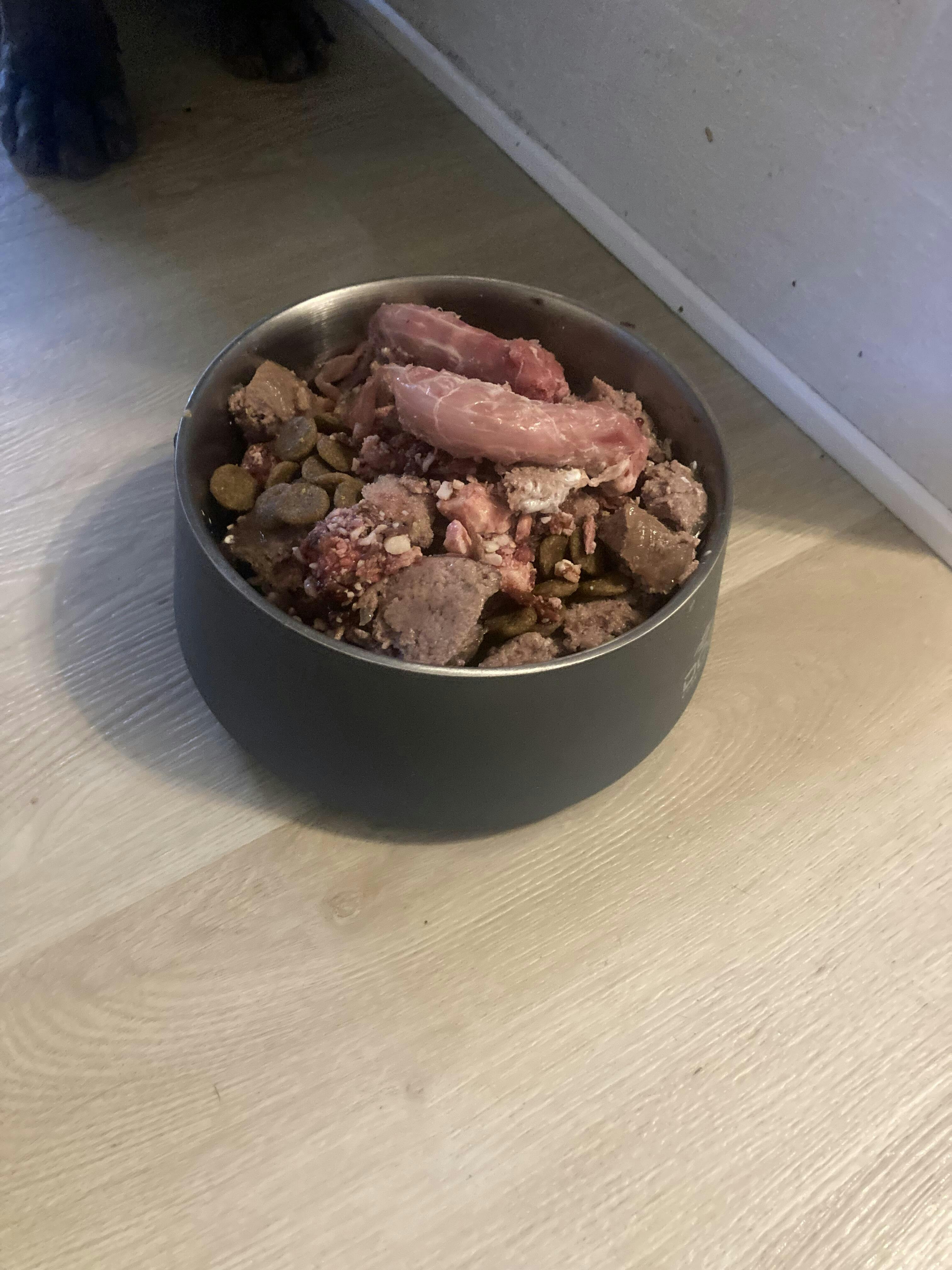 Lækker paté til hvalpe med kødstykker af frisk And og kylling