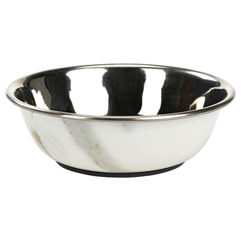 Den AniOne skål i rustfrit stål med sit smukke marmordesign er et stilfuldt og funktionelt valg til dit kæledyrs spiseplads. Med en kapacitet på 350 ml er den perfekt til både foder og vand – især til mindre hunde og katte.
