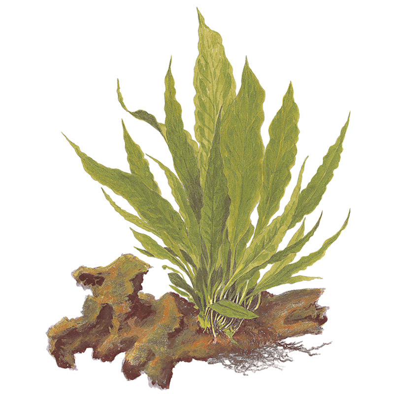 Ideel til placering imellem andre trærødder eller solitært oven på bundlaget i akvariet. Fremragende til brug i akvarier med fisk som graver planter i bundlaget op. Microsorum pteropus er en særdeles hårdfør og nøjsom og kan gro under næsten alle forhold.