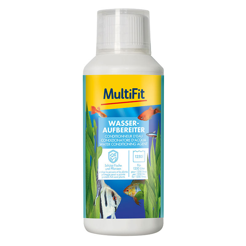 MultiFit Vandbehandling gør postevand sikkert til akvariebrug ved at neutralisere skadelige stoffer som klor og tungmetaller. Den særlige sammensætning beskytter fiskens slimhinder og gæller og hjælper med at reducere stress i forbindelse med transport eller flytning. Produktet er let at dosere og kan anvendes både ved nyopsætning og ved regelmæssige vandskift. En flaske rækker til mellem 1250 og 2500 liter vand, afhængigt af størrelsen, og sikrer optimale betingelser for fisk og planter i akvariet.